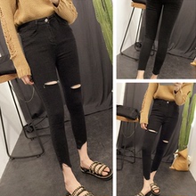 适合娇小女生150cm小矮个子加小码春装显高XS女装破洞牛仔小脚裤