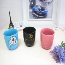新品创意卡通儿童陶瓷水杯蓝胖子叮当猫机器猫KT韩式水杯色釉杯子