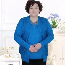 二百斤秋中老年女式加肥加大码妈妈装开衫针织衫外套两件套胖妈装