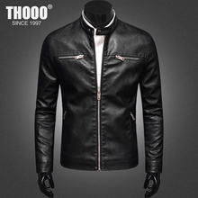 THOOO秋冬季男士 PU皮 短款立领修身水洗机车皮衣皮夹克男潮外套