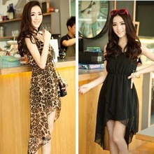 新款夏季女装韩版雪纺连衣裙不规则下摆高腰吊带豹纹