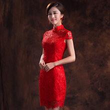 新娘礼服敬酒服新款2017旗袍裙改良红色时尚复古修身短款结婚夏装
