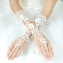 新娘蕾丝手套新娘婚纱礼服手套新款镂空镶钻蕾丝手套配饰
