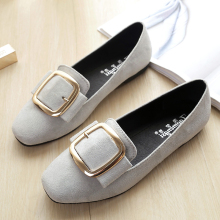 孕妇鞋圆头瓢鞋方扣带钻平底女单鞋小码33-34真皮大码女鞋41-43夏