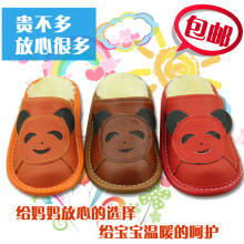 儿童皮拖鞋冬季 熊猫卡通可爱保暖棉鞋 加厚牛筋底防滑棉拖鞋特价