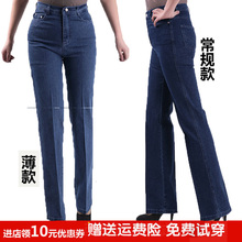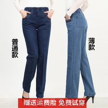 夏季女裤中老年牛仔裤直筒棉弹高腰女式加大码中年妈妈长裤薄款