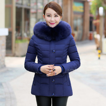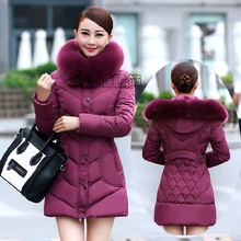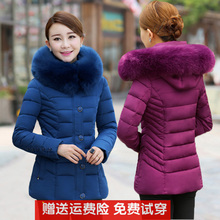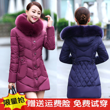 冬季中老年羽绒棉服女中长款修身显瘦大码妈妈装棉衣大毛领外套潮