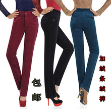 中老年女式高腰条绒牛仔裤弹力显瘦铅笔裤中年妈妈修身小脚长裤女