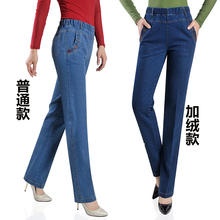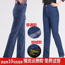 秋冬新款中老年女式直筒牛仔裤高腰宽松大码中年妈妈裤长裤加绒女