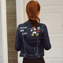 牛仔外套女春2017新款短外套小褂衫修身显瘦高腰卡通印花秋夹克衣