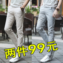 夏季薄款棉麻休闲裤男修身弹力男生长裤子韩版潮流百搭小脚裤2017