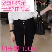 2017春季高腰排扣收腹长腿高个子加长打底裤超长外穿铅笔小脚裤女