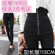 2017春季高腰褶皱拉链收腹高个子加长打底裤超长外穿铅笔小脚裤女