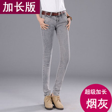 秋款烟灰色弹力大码加长牛仔裤女小脚裤超长加长版女裤子显瘦修身
