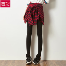 外穿假两件打底裤裙裤女韩版衬衫格子裙打底裤舞蹈紧身小脚裤春秋
