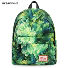 HKS-HOMME双肩包女韩版书包高中学生时尚树叶印花旅行背包电脑包