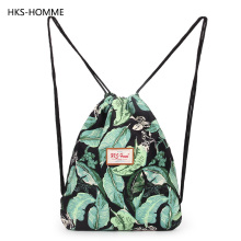 HKS-HOMME印花束口袋抽绳双肩包男女旅行防水轻便旅行背囊运动包