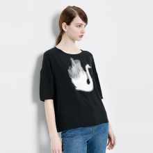 2017春夏新款简约真丝T恤女 纯棉短T真丝圆领短袖上衣女