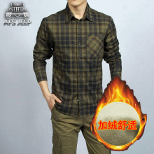 男装正品AFS JEEP长袖衬衫 男士纯棉格子休闲衬衫 男款加绒衬衣
