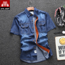 AFS JEEP短袖牛仔衬衫男士短袖衬衣战地吉普大码宽松夏季短袖上衣