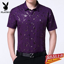 花花公子青年男士短袖丝光棉衬衫修身商务免烫条纹衬衣爸爸装上衣