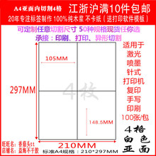 厂家特价 A4亚面不干胶切割 不干胶条码/标签打印纸 直角4格/张