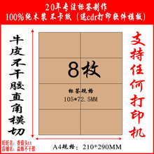 厂家特价 A4牛皮面不干胶 直角切割 不干胶条码标签打印纸 8格/张