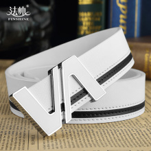 法帅 白色皮带男士真皮平滑扣青年字母腰带男休闲韩版潮简约裤带