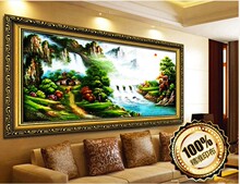 精准百分百印布十字绣流水生财山野人家2米财源亨通客厅大画包邮
