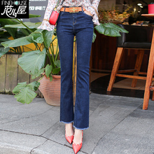 春装韩版高腰牛仔裤微喇叭裤女裤毛边九分裤鱼尾裤微喇休闲长裤女