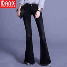 iDance春秋款牛仔裤女弹力大喇叭裤中腰阔腿喇叭裤韩版大码阔脚裤