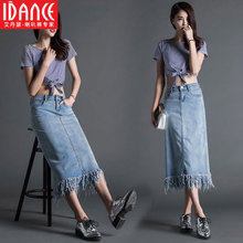 iDance夏季薄款牛仔裙女流苏高腰牛仔长裙毛边提臀H型半身裙中裙