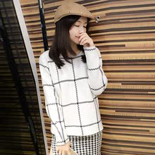 LINYO 定制明星高圆圆同款欧洲站女套头毛衣百搭针织打底衫格子新