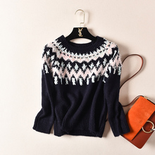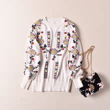 2017春秋装女士毛衣貂绒中长款针织打底衫卡通圆领貂绒衫套头加厚