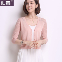 仙豪棉麻女装夏装2016新款潮针织衫女开衫短款外搭开衫女款夏薄款