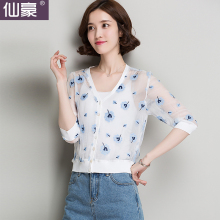真丝外搭七分袖开衫防晒衣女2017短款夏季新款韩版桑蚕丝薄外套