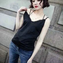 欧洲站吊带背心女2017春夏新款欧货V领蕾丝拼接百搭修身打底衫潮