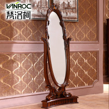 梵洛柯家具 实木雕花穿衣镜子欧式试衣镜 美式仿古旋转落地全身镜