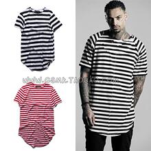 GSMK高街原创条纹打底TEE弧形下摆男女加长款内外搭短袖T恤KANYE