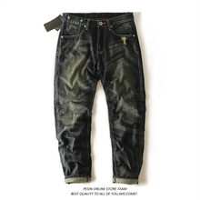 日系潮牌复古水洗男士直筒丹宁牛仔裤 秋冬款男装长裤 青少年裤子