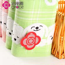 洁丽雅 纯棉加厚双层无捻纱布柔软吸水 儿童情侣可爱卡通洗脸毛巾