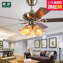 桥田餐厅吊扇灯 欧式仿古木叶风扇灯 卧室书房青古铁叶装饰电扇灯