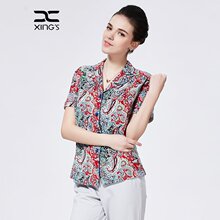 邢氏品牌 2017夏季新款修身显瘦短袖衬衫女大码印花上衣成熟女装