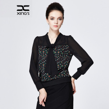 邢氏 2017春夏新品修身大码长袖印花衬衫翻领上衣衬衣成熟女装