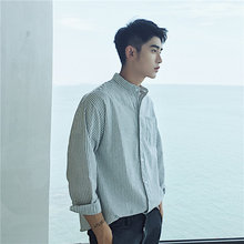 2017开春小清新条纹立领衬衣基础款百搭男士衬衫外套潮文艺青年韩