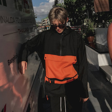 原创设计橙色拼接夹克套头卫衣长袖潮男运动连帽衫青年薄2017春夏