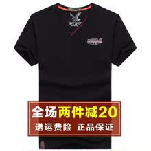 战地吉普/AFS JEEP 夏季新品男士V领短袖T恤 纯棉圆领大码体恤衫