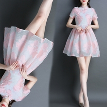 中国风改良旗袍连衣裙女夏2017小清新复古刺绣a字成人公主蓬蓬裙