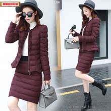 2017冬装新款时尚套装女加厚羽绒棉衣外套包臀裙半身裙套裙两件套
