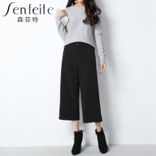 森菲特9分高腰阔腿裤2017女秋冬新款休闲裤子7分裤宽松西装裤潮
